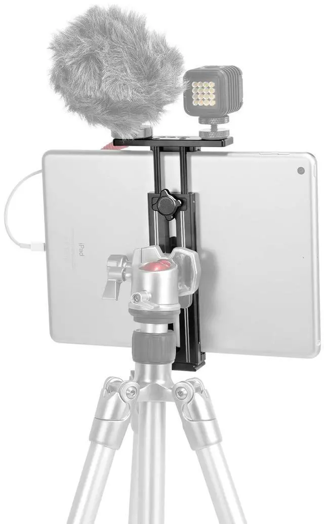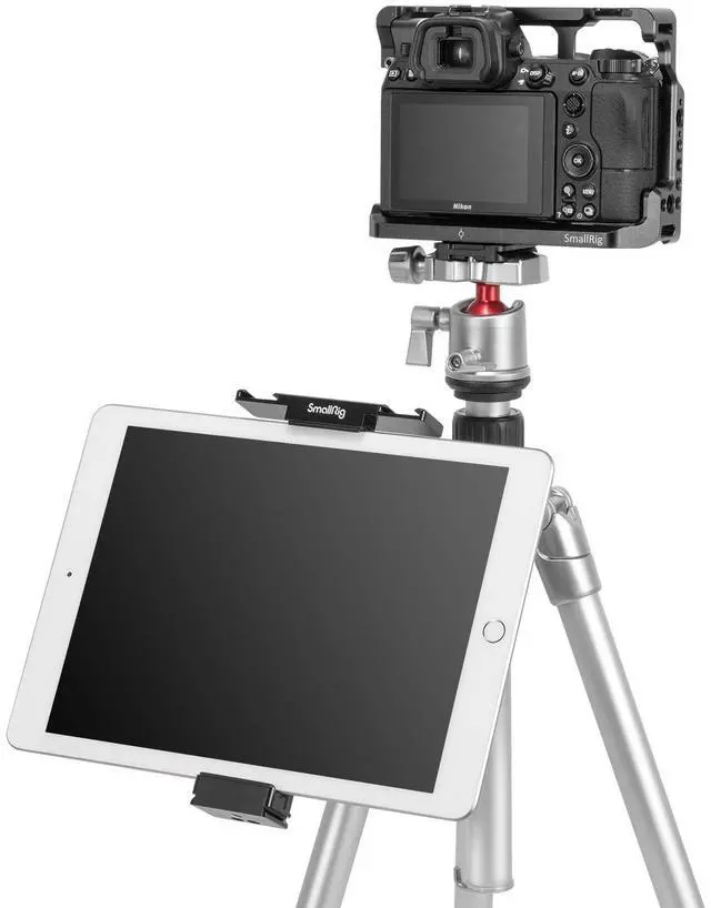 SMALLRIG Metal Holder for iPad Tripod Mount Adapter with 2 Cold Shoe, 1/4" Screw, w/Plate for Acra Swiss Standard, for iPad mini Air Pro Surface Pro ( 7.9 to 12.9 ), Universal Tablet Clamp