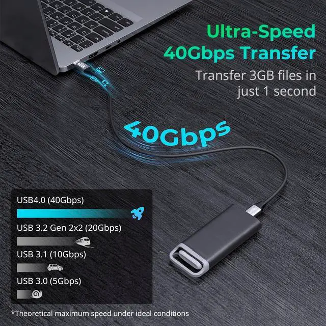 Fast Charging: Achieve blazing-fast data transfers at 40Gbps and charge devices at 240W max powerideal for high-performance laptops, tablets, and peripherals ^^ 8K@60Hz Ultra HD Video & DP 2.0