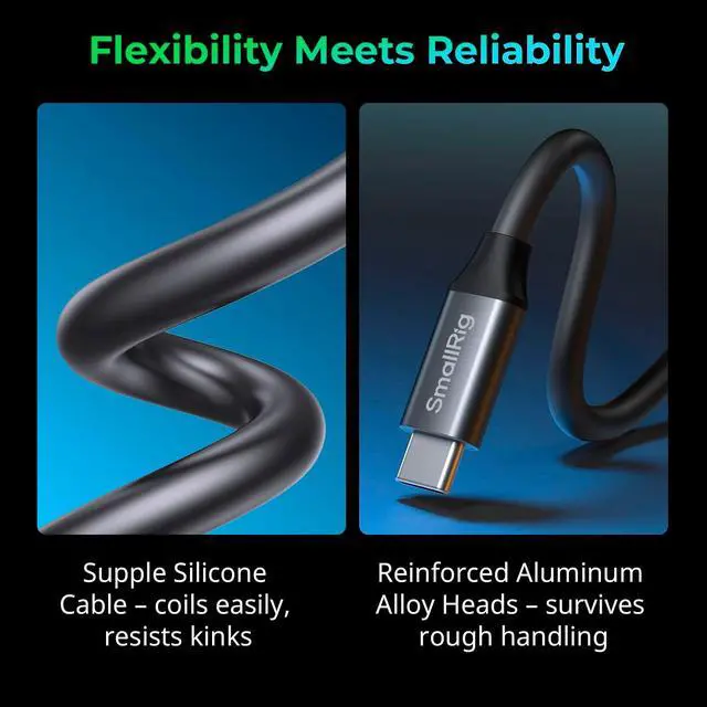 Ultra-Durable Silicone & Aluminum Alloy: Crafted from silicone, the USB-C cable offers a skin-friendly texture and superb flexibility, while the aluminum alloy connectors provide robust durability