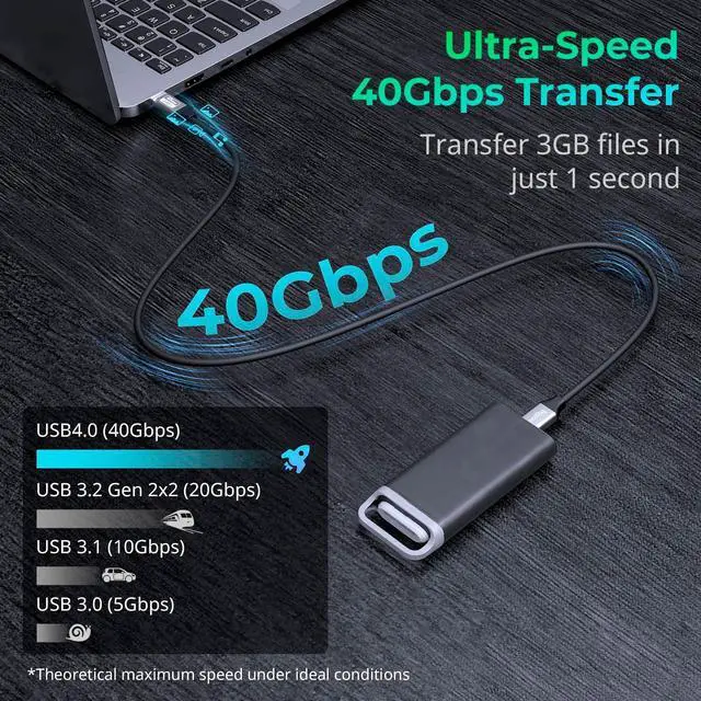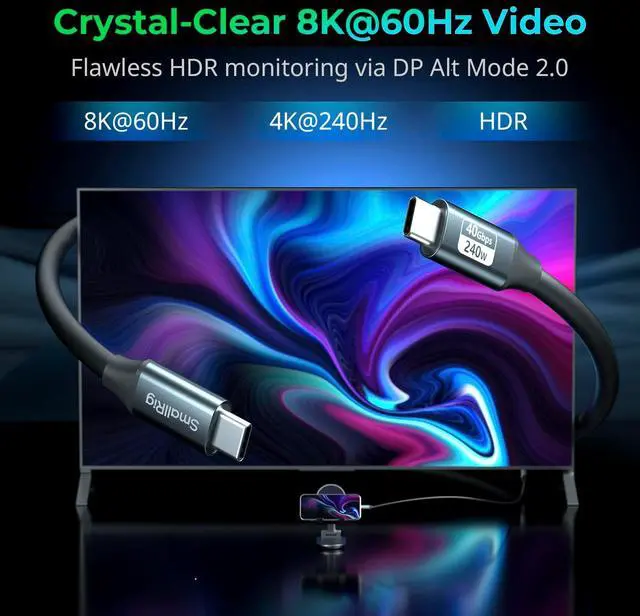 Fast Charging: Achieve blazing-fast data transfers at 40Gbps and charge devices at 240W max powerideal for high-performance laptops, tablets, and peripherals ^^ 8K@60Hz Ultra HD Video & DP 2.0