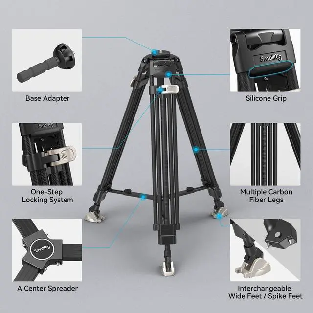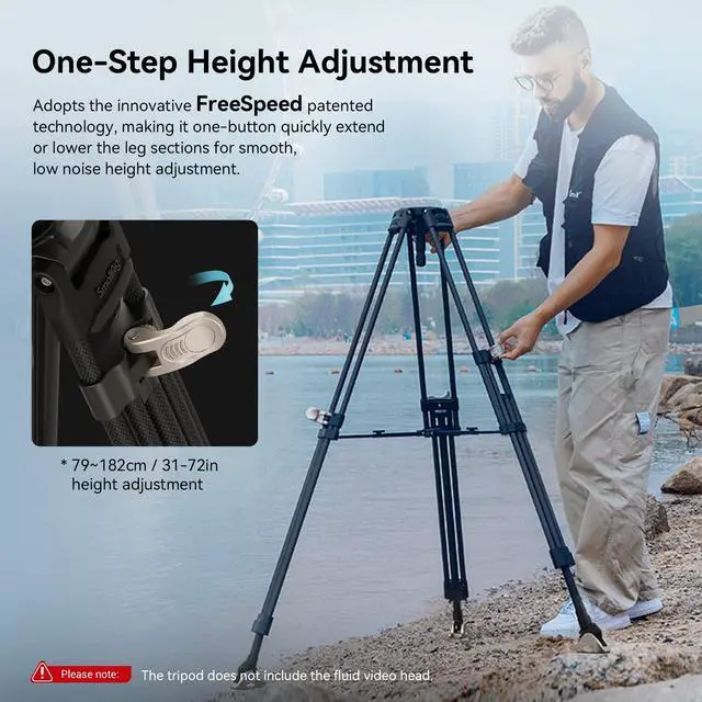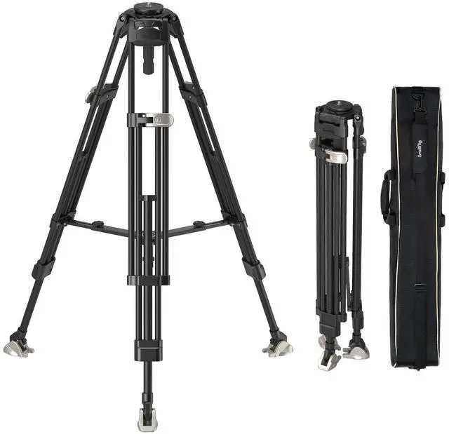 Note: 1. Not sand-resistant or dust-resistant; 2. Please lock the middle spreader before using this tripod; 3. Equipped with a 75mm bowl base