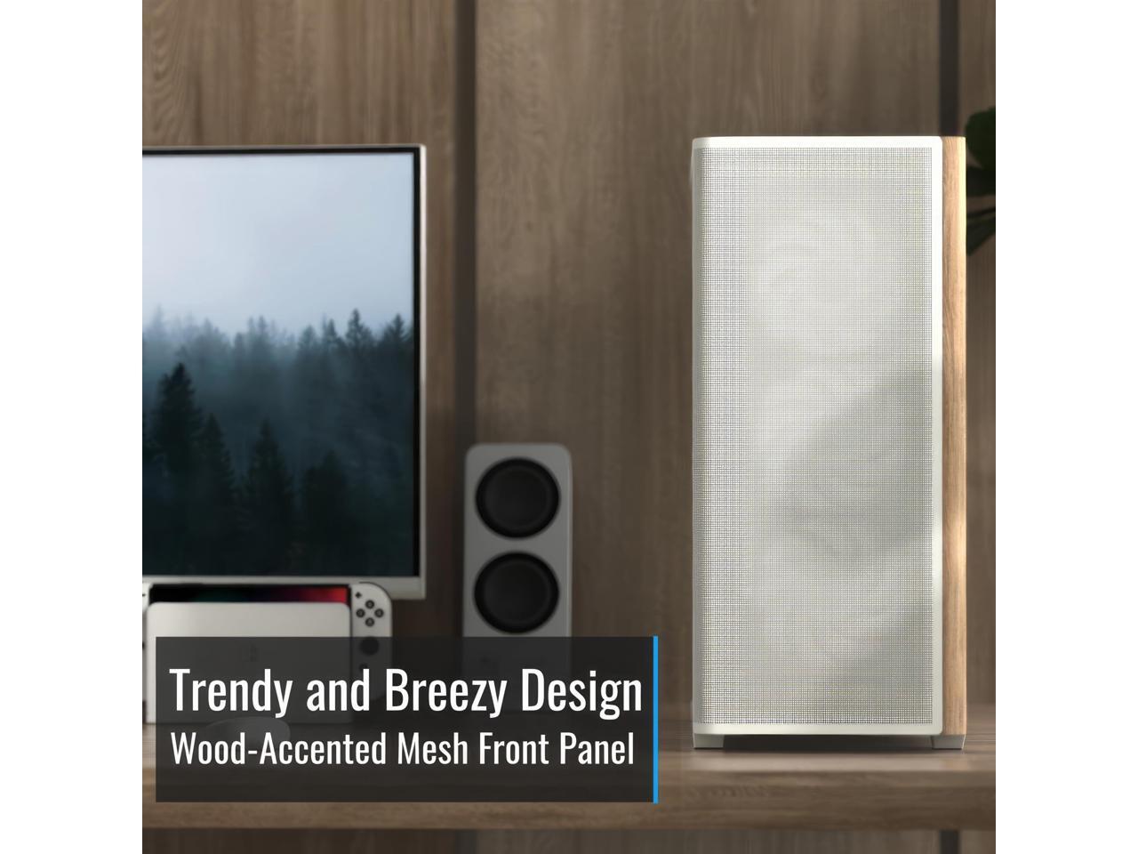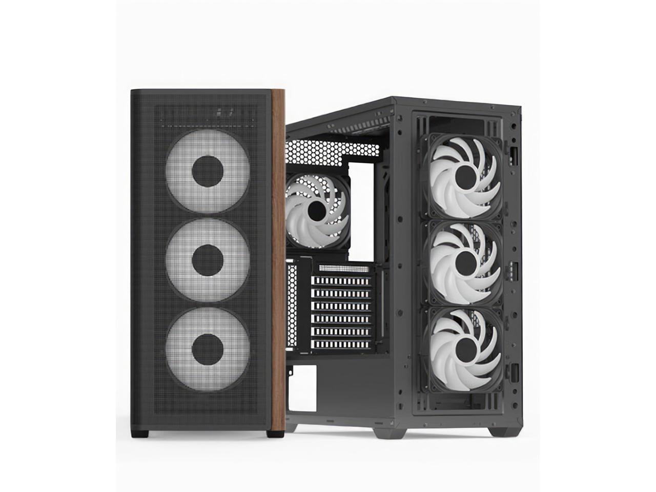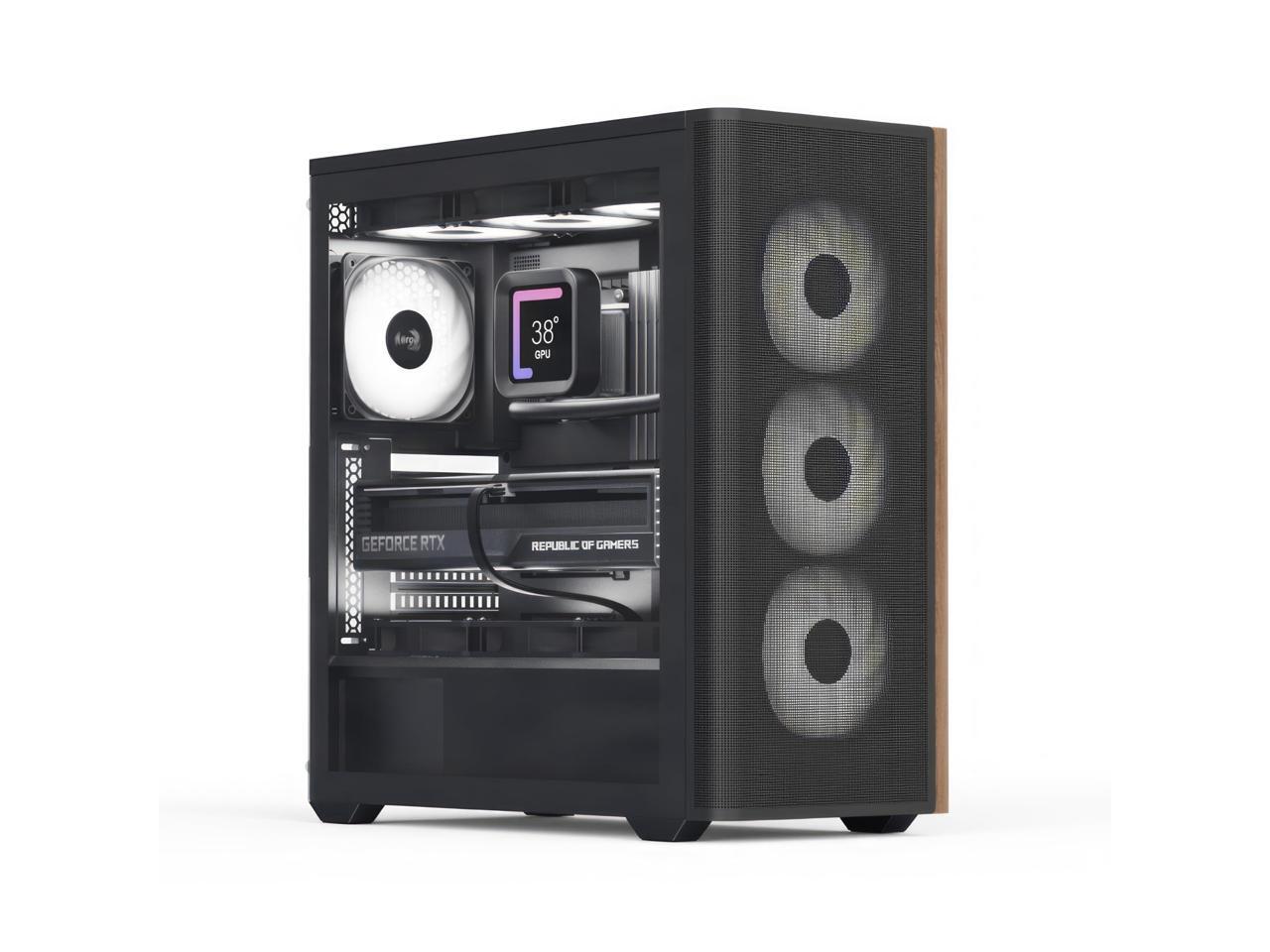 AeroCool D501A Mid Tower Case, Wood-Accented Mesh Front, 360mm Radiator Support, 11 Fan Slots, 400mm GPU, ATX/m-ATX/Mini-ITX, Magnetic Dust Filters, SPCC Steel Construction, Trendy PC Build, Black