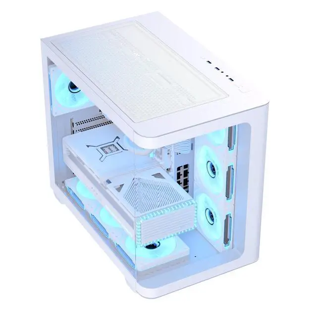• Mid-tower dual chamber case featuring full tempered glass front and side panels for interior viewing.