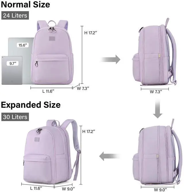 [(Expandable for Extra Capacity)] This Hanke travel backpack for women can be expand 1.7'' in width, and capacity increased from 19 liters to 30 liters, You can instantly get an expandable backpack to pack the gifts or souvenirs you bought on your return trip.