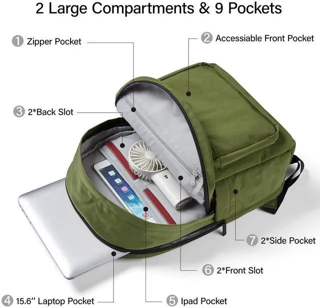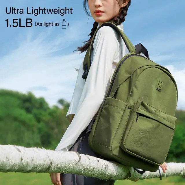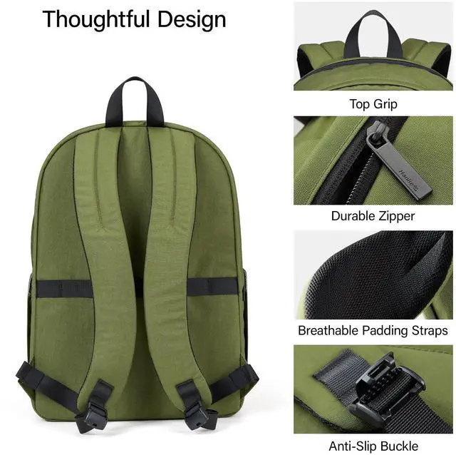 Hanke Travel Backpack for Women Men, Small College Laptop Backpack, Lightweight Water-Resistant Work Bookbag, Cute Casual Daypack for 15.6 Inch Laptop, Pine Green