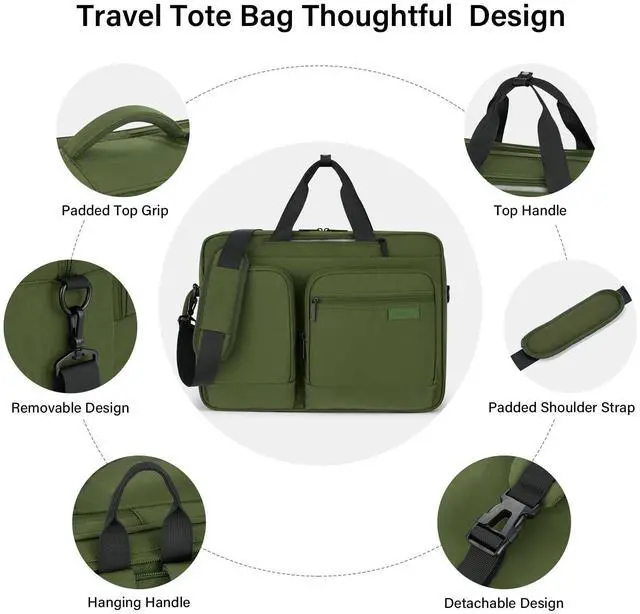 Hanke Underseat Carry On Bag, Convertible Laptop Bag for Men Women, 17.3 Inch Business Computer Briefcase Laptop Messenger Bag, Water-Resistant Travel Tote Personal Item, Pine Green