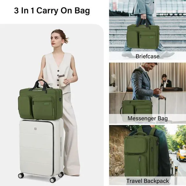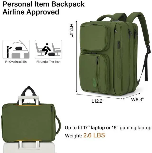 3 in 1 Underseat Carry On Bag: Transform this convertible underseat personal item travel bag (12.2"L×8.3"W×17.5"H, 2.6lbs) into a laptop messenger bag, shoulder bag, or lightweight backpack in seconds. Perfect for short trips, daily commutes, or overnight weekender traveladapt effortlessly while meeting most airline carry-on requirements