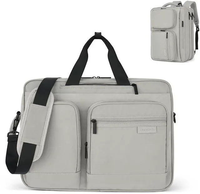 Hanke Underseat Carry On Bag, Convertible Laptop Bag for Men Women, 17.3 Inch Business Computer Briefcase Laptop Messenger Bag, Water-Resistant Travel Tote Personal Item, Rock Grey