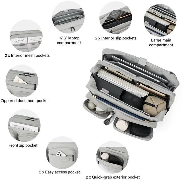 14-Pocket Organization Master: Our laptop briefcase offers maximum capacity with zero clutter. With 2 main compartments and 12 functional pocketsincluding a hidden anti-theft back slot, mesh dividers, and quick-grab side pouchesyou can store passports, chargers, and 13 days of essentials like a pro
