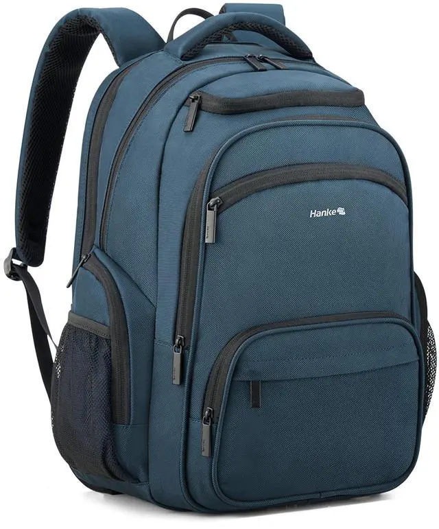 Smart Multi-Pocket Organizer: Hanke college Navy Blue backpack for women and men features a padded 15.6" laptop compartment, iPad sleeve, dual front pockets, side mesh pockets, and internal slots for small accessoriesno more digging mid-flight. A true travel laptop backpack designed for practical organization
