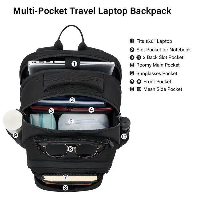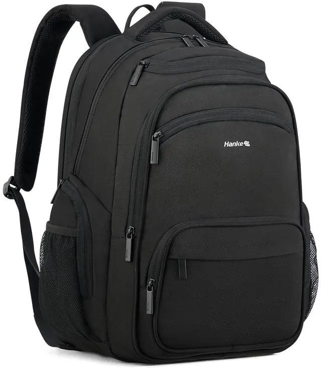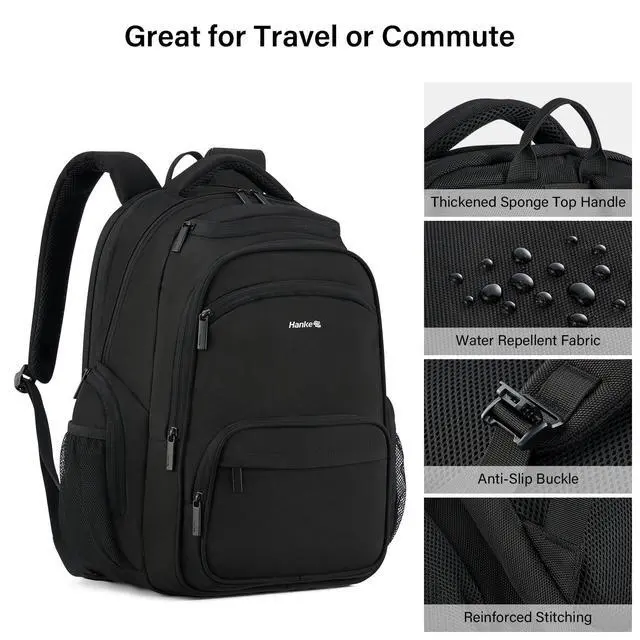 Smart Multi-Pocket Organizer: Hanke college black backpack for men and women features a padded 15.6" laptop compartment, iPad sleeve, dual front pockets, side mesh pockets, and internal slots for small accessoriesno more digging mid-flight. A true travel laptop backpack designed for practical organization ^^ Lightweight Comfort for