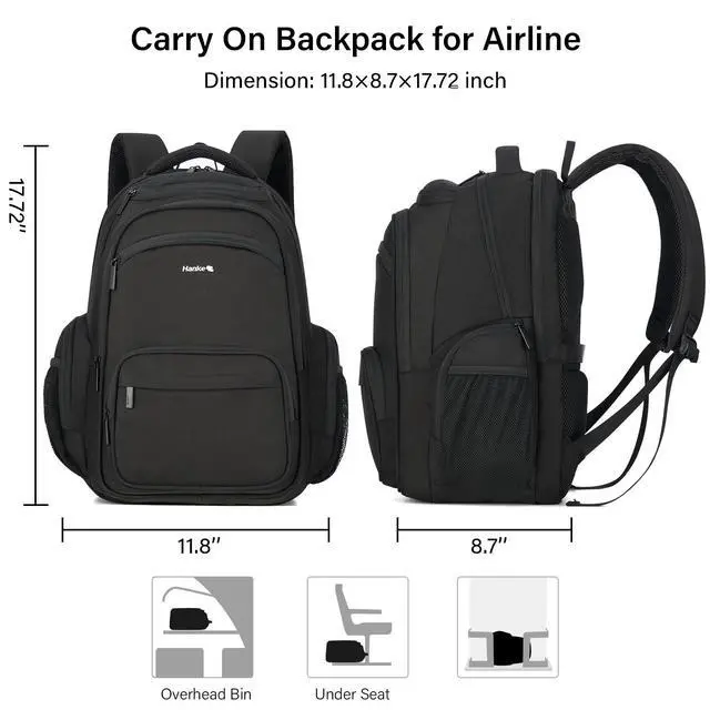 TSA-Approved Carry-On Size: Hanke carry on backpack meets most airline requirements for a Personal Item Size ( 11.8" x 8.7" x 17.7", 30L). Slide it under seats or into overhead binsperfect for seamless business or weekend travel with your travel laptop backpack ^^