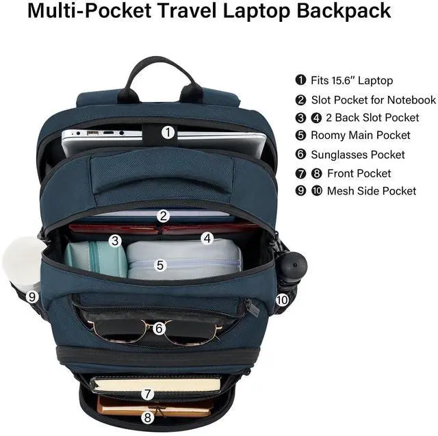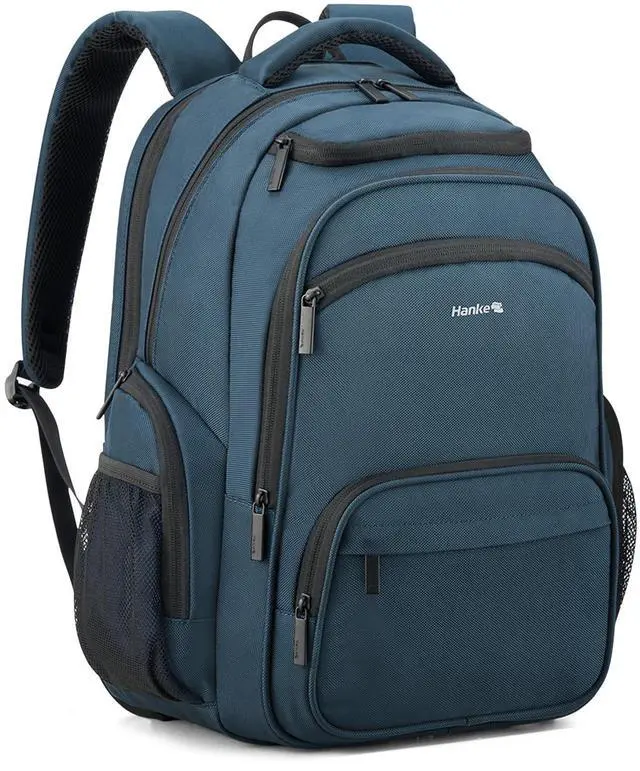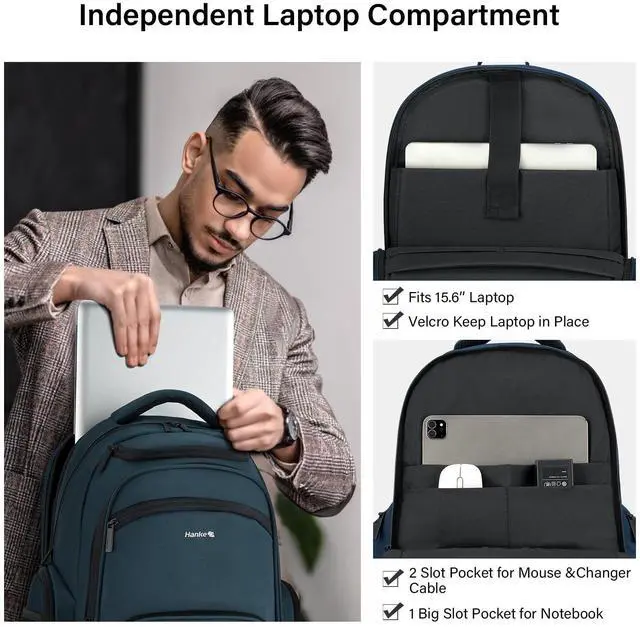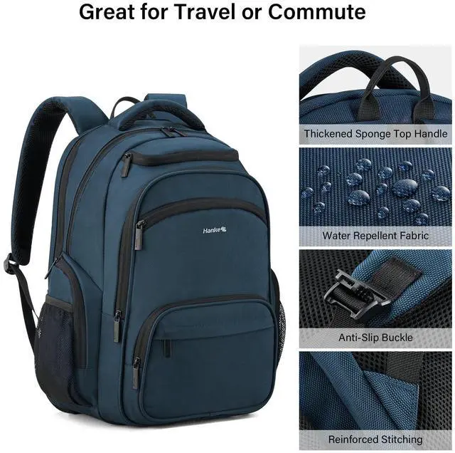 Smart Multi-Pocket Organizer: Hanke college Navy Blue backpack for women and men features a padded 15.6" laptop compartment, iPad sleeve, dual front pockets, side mesh pockets, and internal slots for small accessoriesno more digging mid-flight. A true travel laptop backpack designed for practical organization ^^ Lightweight Comfort for