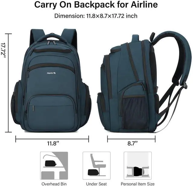 TSA-Approved Carry-On Size: Hanke carry on backpack meets most airline requirements for a Personal Item Size ( 11.8" x 8.7" x 17.7", 30L). Slide it under seats or into overhead binsperfect for seamless business or weekend travel with your travel laptop backpack ^^