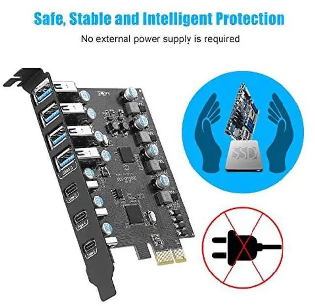 • [(7 Ports USB Expansion Card)] The pcie card allow users add 7X USB ports (4-Ports USB-A and 3-Ports USB-C) on desktop computers by PCI Express(1X) interface. You can connect a keyboard, mouse, external hard drives, CD/DVD drives, webcams, USB printers, scanners, game controllers, USB VR, digital cameras, etc.