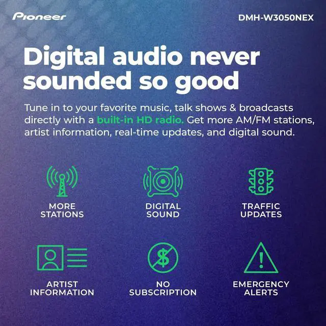 Introducing the pinnacle of in-car entertainment technology, the DMH-W3050NEX is an evolution of our best selling DMH-W2770NEX and newly launched DHM-W3000NEX head units, with newly added features to enhance your ride. Designed to revolutionize your driving experience, this cutting-edge double din car stereo and multimedia receiver boasts a stunning 6.8 -inch floating display that brings your vehicle's dashboard to life like never before. Immerse yourself in a world of audio and visual excellence with the vibrant and responsive touchscreen. Whether you're tuning into the radio, streaming your favorite music, watching movies, or accessing your navigation system or using (wireless, wired) Apple CarPlay / Android AutoTM, the DMH-W3050NEX delivers crystal-clear visuals with impressive color accuracy, ensuring every detail is showcased in breathtaking clarity.