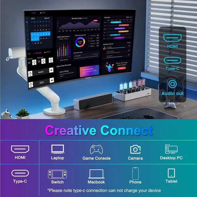 Ports and Speakers: 1*USB Type-C 1*HDMI 1.4 2*2W Built-in Speakers for Daily Use.