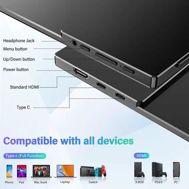Remote work during travel or outdoor. Demonstration in meetings, exhibitions or sales, etc. Suitable for connecting HP laptop, Lenovo laptop, Dell laptop, Asus laptop, Macbook, iPhone, Game Console, Tablet, PS, Xbox, etc ^^ Integrated StandInnoView travel monitor for laptop is a perfect combination. Effectively reduce screen wear and enhance protection. It is lightweight and portable and will never be a burden on your daily commute. Laptop monitor extender built-in stand, the suitable viewing angle can be adjusted within 90 ^^ Wide ConnectivityTravel monitor provides 2 full-featured Type-C ports and 1 standard HDMI port, resulting in greater compatibility and durability.