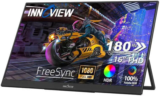 200% Work Efficiency, 180hz Ultimate Gaming ExperienceINNOVIEW portable screen featuring Kiskand technology and a 180Hz refresh rate, this portable monitor delivers smooth performance for efficient office work and light gaming, It has a built-in 2W speaker, providing a portable and comfortable experience when you are entertaining and watching movies, making it an ideal choice for professionals and students. ^^ 100% sRGB True-to-Life ColorsINNOVIEW travel monitor for laptop with 100% sRGB color gamut coverage, this monitor ensures accurate color reproduction. Whether working on design projects or watching films, enjoy vivid and realistic visuals with perfect detail.