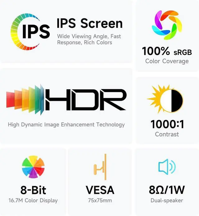 High Refresh Rate]: The 100Hz refresh rate renders motion significantly smoother than conventional 60Hz displays. From fast-paced gaming and smooth scrolling to judder-free video playback, every action feels incredibly responsive and visually seamless. ^^ [Vibrant 100% sRGB