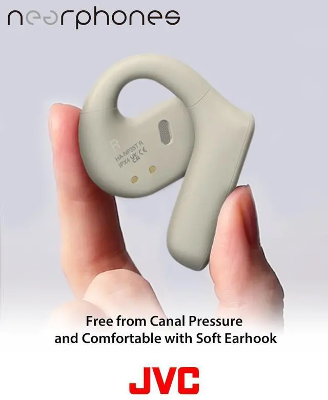 The JVC nearphone open ear true wireless headphones are Bluetooth 5.1 technology ensures a dependable connection. These JVC wireless headphones come with 16 mm driver, delivering up to 17 hours of playback, IPX4 rated of water registant.