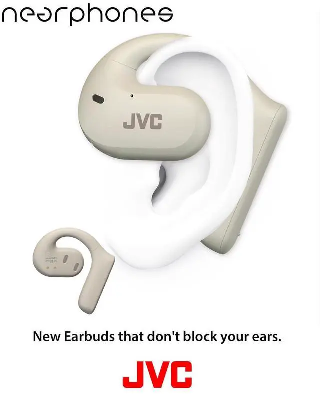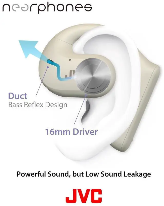 JVC Nearphones Open Ear True Wireless Headphones with 16mm Large Drivers for Powerful Sound, Single Ear use, and Long Battery Life (up to 17 Hours) - HANP35TW (White)