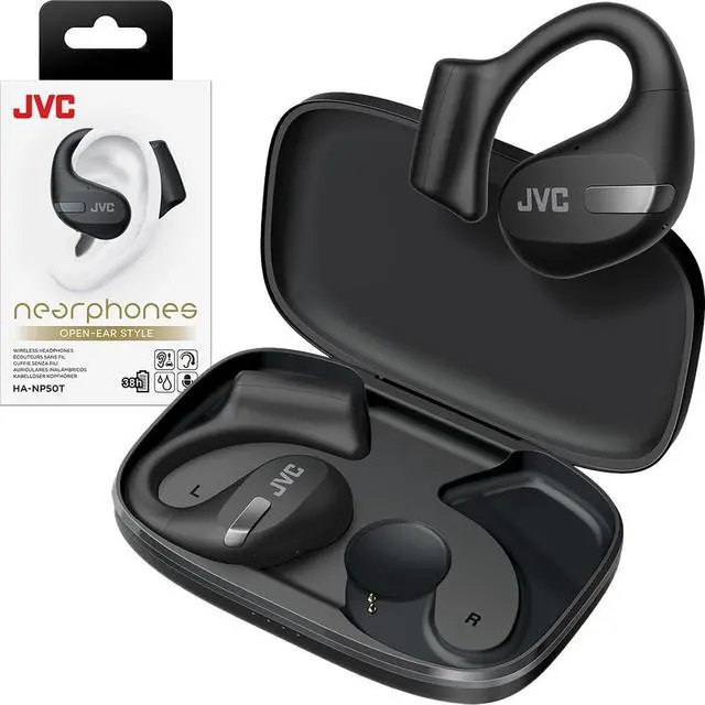 JVC New Nearphones Open Ear True Wireless Headphones with 16mm Large Drivers for Powerful Sound, Single Ear use, Compact Size, and Long Battery Life (up to 38 Hours) - HANP50TB (Black)