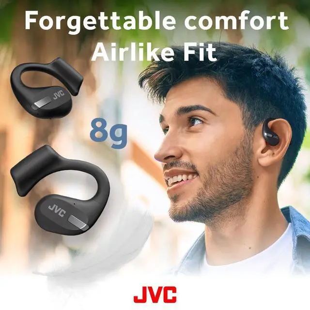 The JVC NEW nearphone open ear true wireless headphones are Bluetooth 5.3 technology ensures a dependable connection. These JVC wireless headphones come with 16 mm driver, Multi Point function, Low Latency Mode, delivering up to 36 hours of playback, IPX4 rated of water registant.