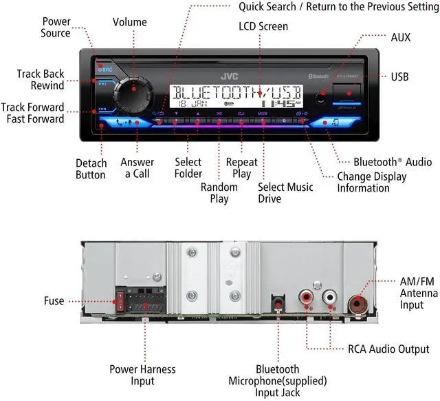 ALL-TERRAIN COMPATIBILITY: With durability & its ability to withstand harsh environments of the rugged outdoors, this JVC Bluetooth Car Radio Receiver is ideal for Cars, Jeeps, UTV's, Motorcycles, Watercraft, Golf Carts or open top vehicles ^^