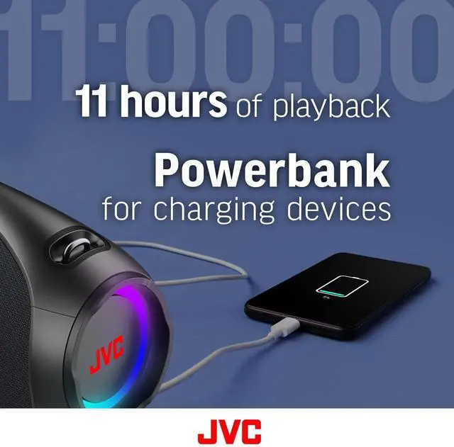 ENDLESS PLAYTIME & CHARGING POWER: With an 11-hour battery life and a built-in power bank, this portable Bluetooth speaker keeps your devices charged and the music flowing ensuring you're always connected ^^