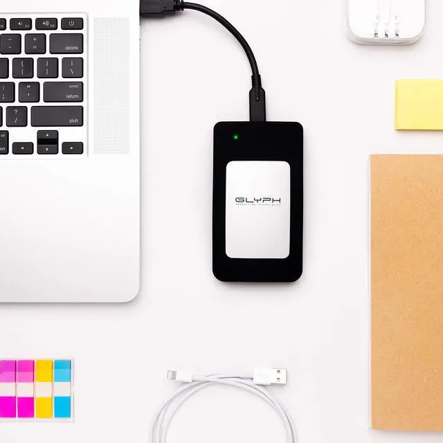 Glyph atomraid 2 TB with USB interface external SSD TYPE-C ( 3.1, gen 2), USB 3 and thunder bolt 3 Silver version.
