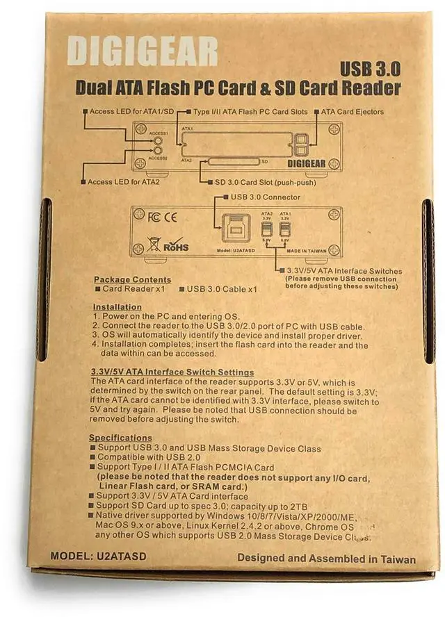 3. Support Two Type I/II ATA flash PCMCIA cards(please be noted that the reader does not support any I/O card, Panasonic P2 card, Linear Flashcard, or SRAM card)