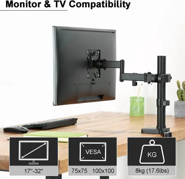 Universal Pole Mount - This sturdy steel monitor arm fits any pole from 1.1" to 2.4", allowing you to mount your TV or monitor in most spaces. Designed for 17" to 32" monitors & TVs weighing up to 17.6 lbs with VESA 75x75mm or 100x100mm mounting holes. Great for outdoor seating areas, garages, RVs, boats, retail, stages and more! We provide 4 zip ties for your cable management. Please Note: Pole is not included.