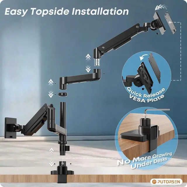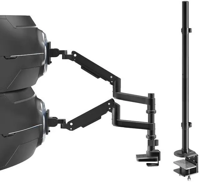 If you need higher for your two stacking monitors, you could buy this bundle which include a 31.5 '' long pole (include steel base). Then you could get higher setups! What's more, if your desk thickness is bigger, you could also buy this long pole (with steel base) because this steel base can fit with C-Clamp (for desk thickness up to 3.35" thick) and grommet mount(fits desk thickness up to 1.97" )