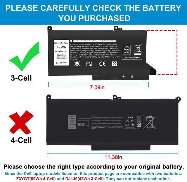 Futurebatt New Replacement Battery for Dell DJ1J0 451-BBZL PGFX4 ONFOH DJ1JO, for Dell Latitude 12 7000 7280 7480 Series [42Wh 11.4V ]