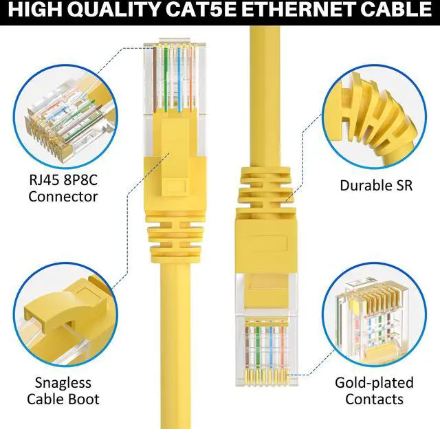 Cat5e Ethernet Cable 300 FT, Long Cat 5e Internet Cable, Yellow Snagless Patch Cord, Flexible, Network, LAN, PoE, Standard RJ45 Connector for PC, Server, Router, Modem, TV, PS5 - with 15 Cable Ties