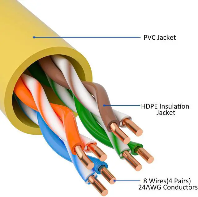 [(Made of Premium Materials)] : Kxable Ethernet Cable features 8 high-quality 24AWG copper-clad aluminum solid wires and 8P8C RJ45 connectors with gold-plated contacts. Each of the 4 unshielded twisted pairs (UTP) are separated by a PE cross insulation to avoid signal interference. The molded strain-relief boot provides durability, and ensure a secure connection.
