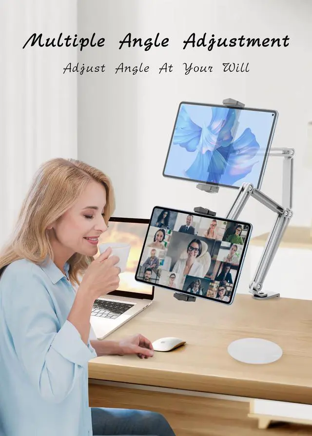 Full-Range Motion & Versatile Positioning: Rotate the 360deg swivel base and multi-jointed arm to position your tablet vertically or horizontally, adapting to desk work, bed streaming, or kitchen recipes