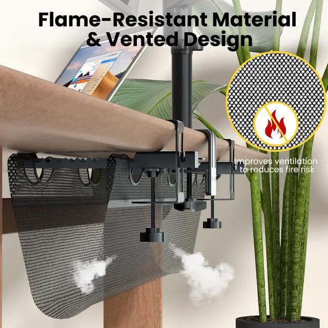 Flame Resistant Material-Vented Design: Mesh Cable Manager is constructed of flame-resistant materia to reduces fire risk, protection from possible electrical fires; The lightweight mesh allows increased airflow, Good airflow to keep under desk cables cool and to prevent overheating