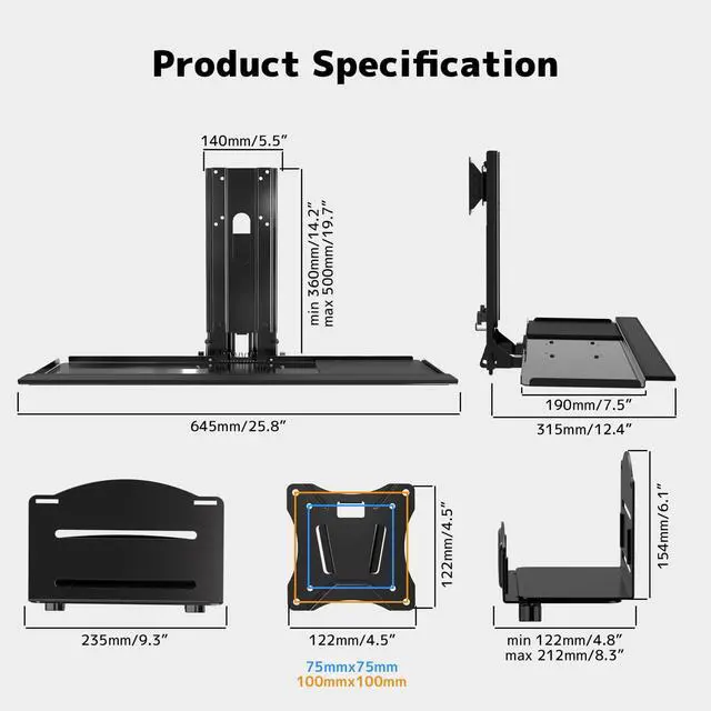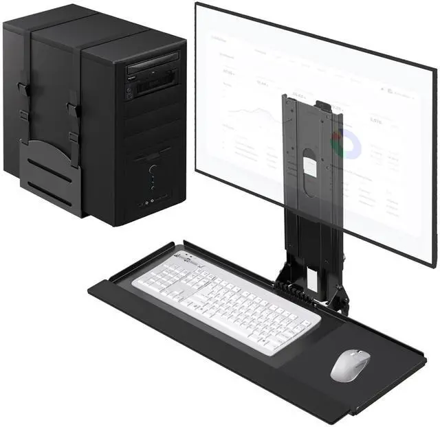 Ergonomic & Height Adjustable Design The keyboard tray adjusts vertically and tilts to support a comfortable typing posture, ideal for shared or standing workstations