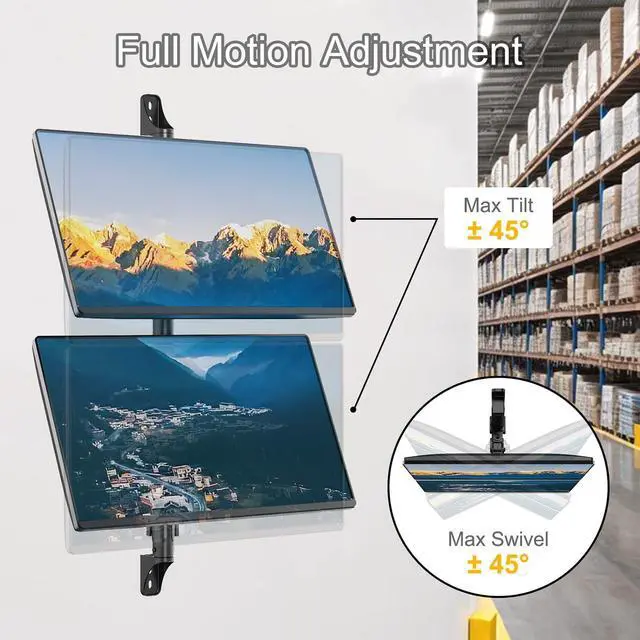 Space-Saving Wall-Mount Design: Elevate dual monitors off your desk to maximize workspace and create a clean, organized setup. Perfect for various settings, including hospitals, warehouses, and offices ^^