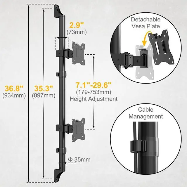 Pole: Built with high-strength steel, the 32-inch tall pole supports a variety of height preferences and dual monitor configurations with exceptional stability ^^ Quick and