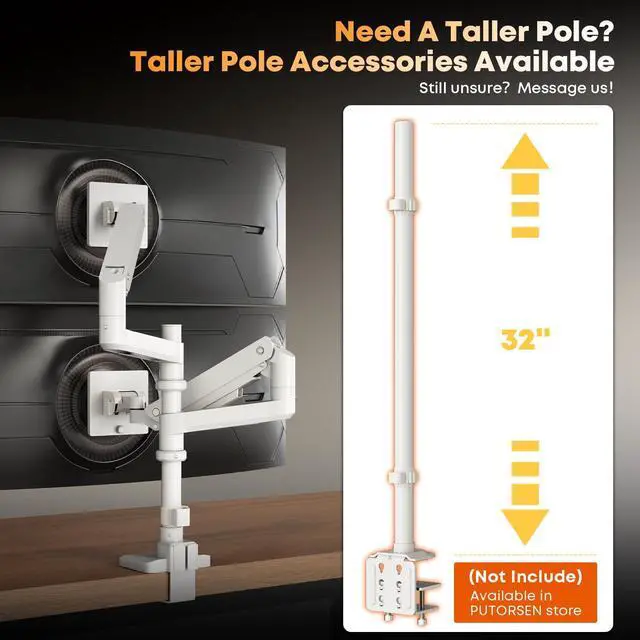 Flexible Adjustment & Vertical Stacking: Enjoy full motion with tilt, swivel, and height adjustment, or stack two 49" monitors vertically to save a lot desk space. The gas spring system allows smooth, one-finger positioning without sagging.