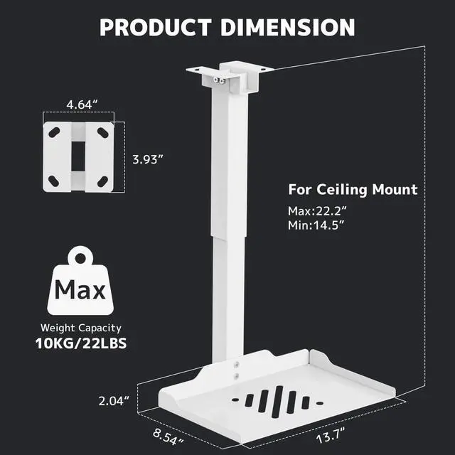 Easy Installation: Step-by-step instructions and hardware are provided for smooth assembly and installation. After assembling the mount, simply screw the mount to the ceiling or wall and place the projector or camera on the tray ^^ Hidden