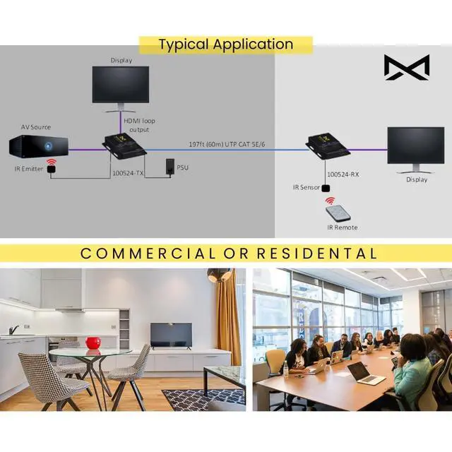 ^^ Long-Range HDMI Extension: Transmit 4K/30 video up to 40m and 1080p video up to 60m over Cat6 unshielded twisted pair cable.