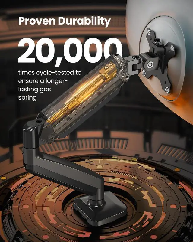 ^^ Proven Durability: This adjustable single monitor arm undergoes rigorous 20, 000 times cycle tests for long-lasting. It delivers smooth and effortless adjustments, providing reliable performance for years of daily use. ^^ Free Up Your Desk for