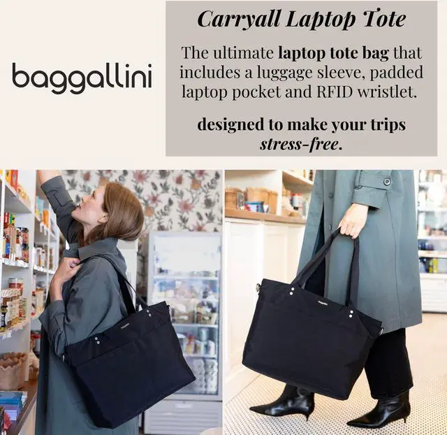 With the ability to be worn as a shoulder bag or crossbody bag, this spacious tote bag is a must-have for your work week, upcoming travels, weekend or day trips. Store your laptop computer in the secure 15" laptop sleeve. For smaller items that require fast access, exterior slip pockets and an RFID wallet wristlet have you covered. Stack the Carryall Laptop Tote on your wheeled luggage for a seamless travel experience. This purse offers plenty of room for your travel essentials, cruise essentials, beach essentials, camping essentials and everyday essentials.