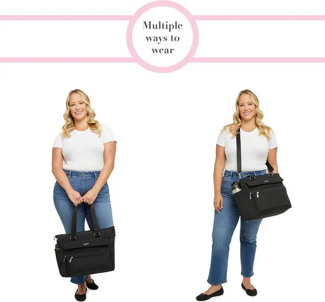 Whether you're using it as a daily laptop tote or a travel laptop tote, this do-it-all bag is sure to rise to the occasion with its padded laptop pocket, convenient luggage sleeve, and a side compartment for your water bottle. An easy-to-adjust crossbody strap adds extra versatility to this laptop travel bag, while the included RFID wristlet offers even more options for staying organized.