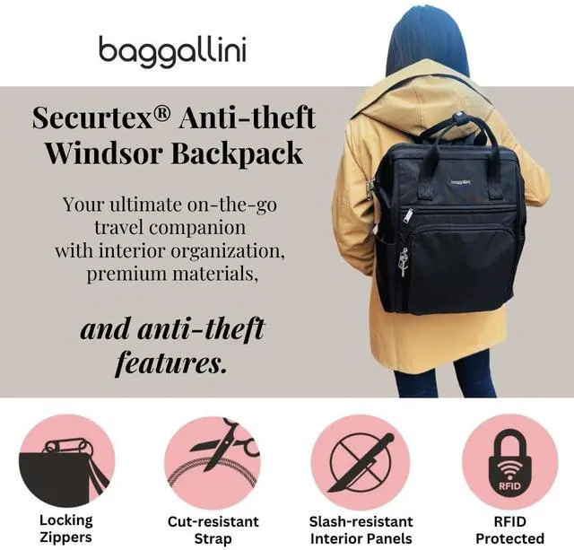 Whether youre commuting to work or taking a weekend trip, the unique frame-top opening of this anti-theft backpack promises quick and easy packing. Plenty of multifunctional pockets offer ways to stay organized on the go, while the cut-resistant straps, locking zippers, and slash-resistant fabric help to protect your belongings. A built-in luggage handle sleeve adds an extra touch of convenience for longer getaways.