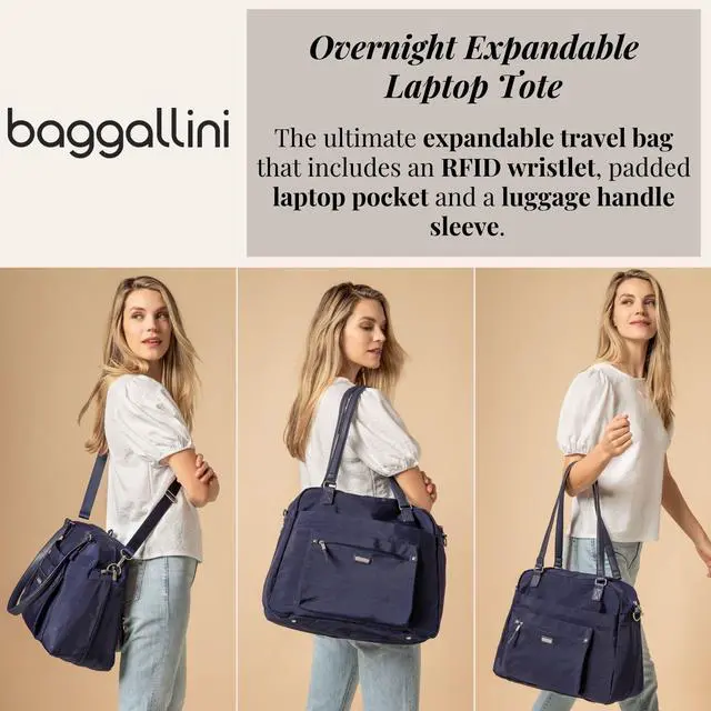DescriptionYou're ready for everything, so your weekender bag should be, too. Designed with impulse trips and unplanned layovers in mind, the overnight expandable laptop tote bag features plenty of room for your computer and other essentials. Stay safe with the included RFID-blocking phone wristlet, and enjoy travel-ready versatility thanks to your weekender's removable crossbody strap and carry on size. This travel bag is the perfect work tote, laptop tote, gym bag, beach bag, travel bag, duffel bag, overnight tote bag, shoulder bag and so much more.